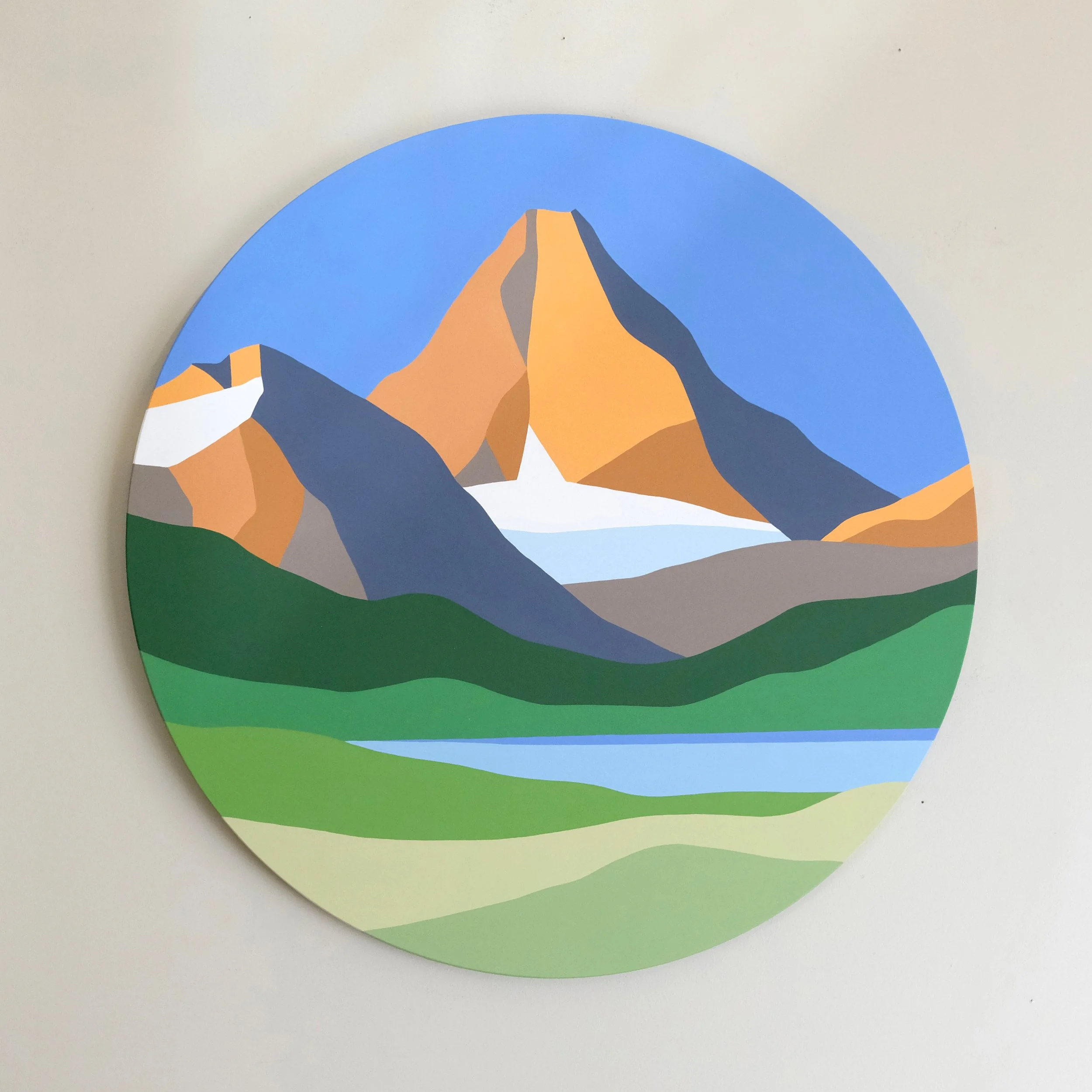 Those paintings were a special commission for the Moxy hotel in Banff. They were overlapping 36” round birch panels. They required special installation and subject considerations because of the unique design. I can offer this style again, or a more practical option could be creating a similar image on raw canvas.
