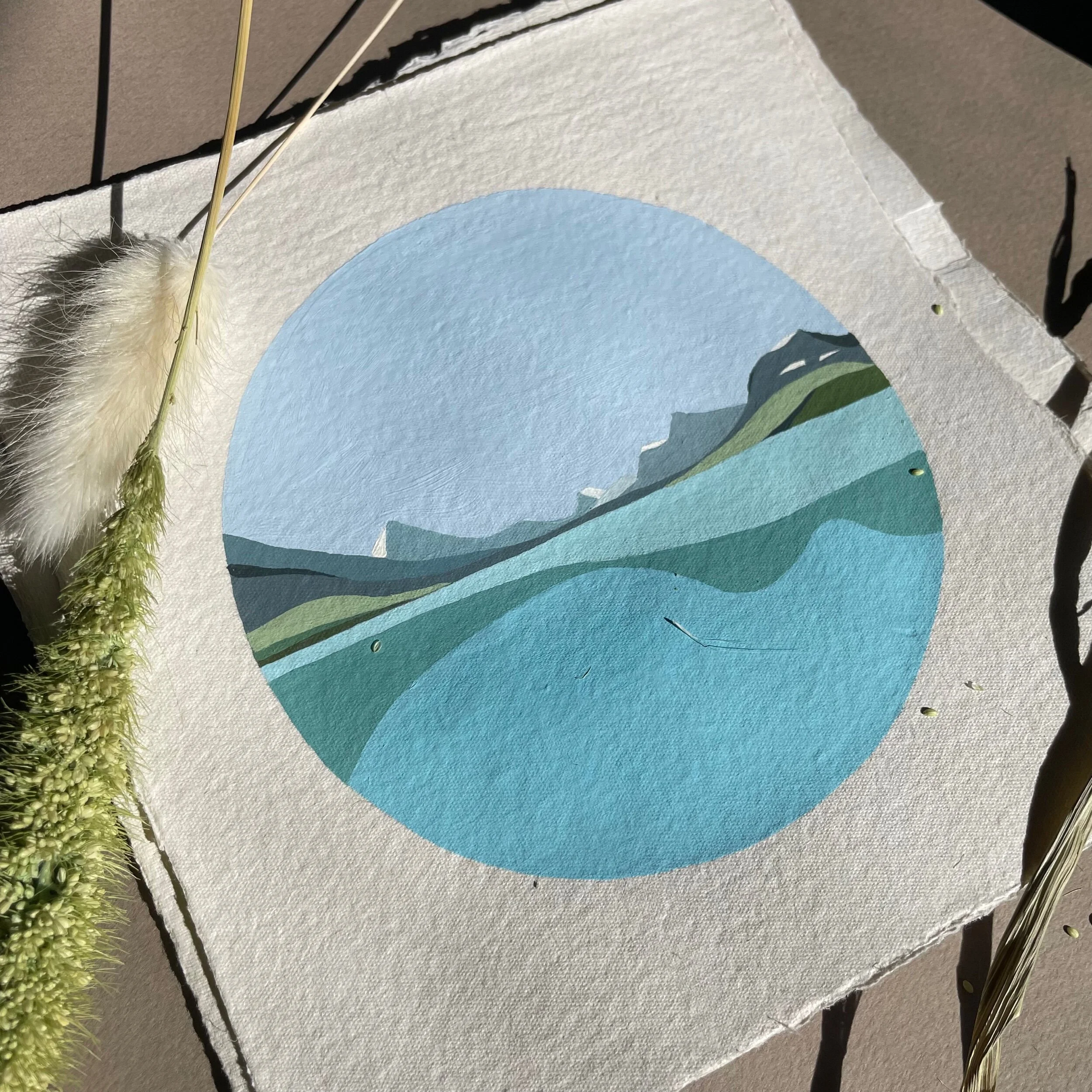 I can work from most photos of your favourite landscape! I primarily paint mountains and alpine lakes, but please send me an email if you have something else in mind, like a beach or forest landscape.